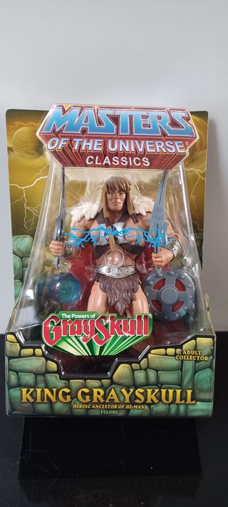 Action figure di King Grayskull dalla linea Masters of the Universe Classics. Masters of the Universe Classics King Grayskul New in Box. Meraviglioso personaggio da collezione della serie Masters Of The Universe Classics di Mattel. Completo di tutte le sua armi e accessori, così come la sua card back, scatola bianca...nuovo mai aperto. - Figura da collezione. - Include accessori. - Confezione originale.