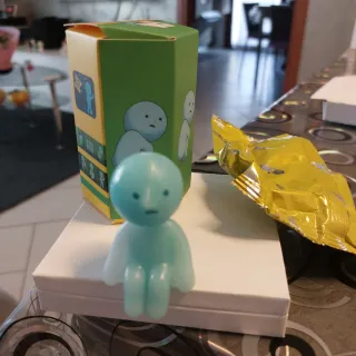 Figura Smiski, un pequeño compañero para coleccionar. - Diseño con forma de persona. - Color azul claro translúcido. - Ideal para coleccionistas.