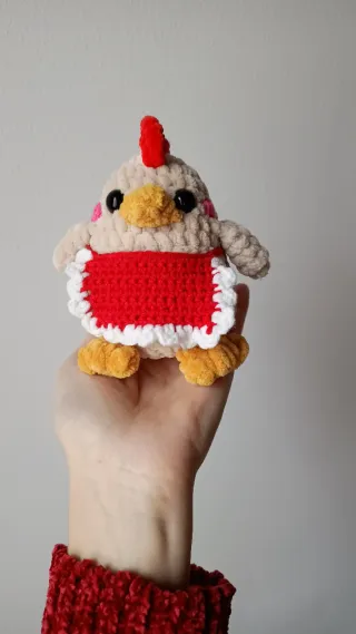 Deliziosa gallina amigurumi realizzata a mano all'uncinetto. Perfetta come idea regalo o decorazione. - Morbida e soffice al tatto. - Dettagli curati come il grembiulino rosso e le guance rosa. - Realizzata con filato di alta qualità. 12 cm