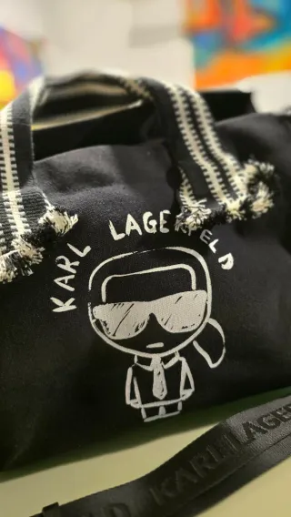 Elegante borsa tote Karl Lagerfeld, perfetta per ogni occasione. Presenta un design iconico con il personaggio stilizzato del designer. - Manici a contrasto con frange. - Tracolla regolabile e rimovibile con logo. - Chiusura superiore.