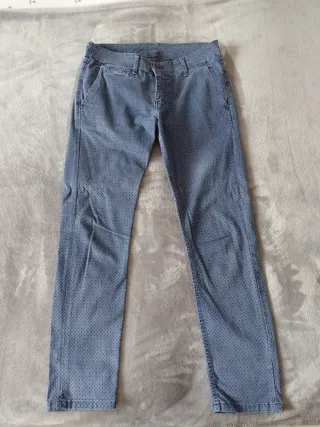 Pantalone chino o cinque tasche da uomo -fondo blu con traumatura geometrica nera -taglia 46 -misura : vita cm 40 , lunghezza cm97 , lunghezza dal cavallo cm 70 , coscia cm 26 -tessuto 98% cotone , 2% elastame -spedizione veloce 🚀 -eseguo sconti sui set 🧸🎧🎾🏀👖👕👞👜 #pantalone #chino #blu #moda #casual #modacasual #cinquetasche