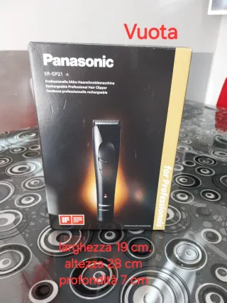 Scatola vuota per tagliacapelli professionale Panasonic ER-GP21. - Dimensioni: larghezza 19 cm, altezza 28 cm, profondità 7 cm. - Design professionale.