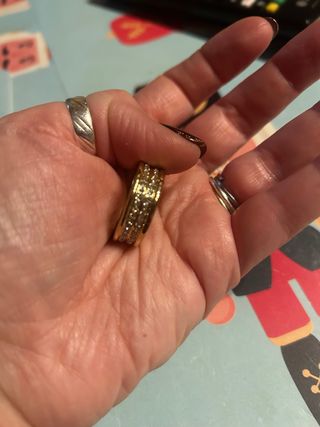 Elegante anello dorato impreziosito da zirconi. - Design a fascia. - Dettagli scintillanti.