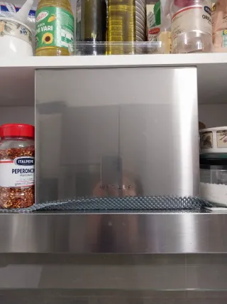Cappa aspirante da cucina in acciaio inossidabile. Usata in ottime condizioni - Design moderno e finitura lucida. - Include filtri antigrasso. - Misure: 87x30 cm.
