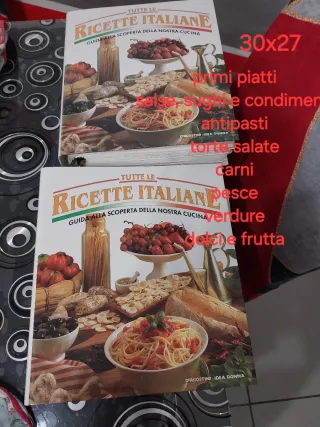 Raccolta di tutte le ricette italiane De Agostino Mai usata ma ci sono dei punti ingiallite e pagine staccate perché non sono stati fatti nella distanza giusta Vendo anche singolarmente ciò che serve cioè solo primi piatti o solo secondi ecc.solo una pietanza 20.00