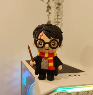 Figura di Harry Potter in stile crochet, realizzata con stampa 3D, con un design molto originale che imita il tessuto di lana. Misura 15 cm, ideale per i fan della saga e perfetta per decorare scaffali, scrivanie o collezioni magiche. 🧙♂️✨ Molto dettagliata e con molto fascino. Un tocco magico per qualsiasi angolo! ⚡📚