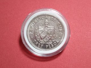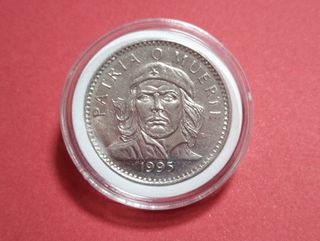 VENDO: LOTE Nº 71. MONEDA CONMEMORATIVA DEL CHE GUEVARA 1995. TRE PESI, REPUBBLICA DI CUBA. ANVERSO: Stemma di Cuba, nome del paese come legenda curva nella parte superiore, valore nominale in lettere come legenda curva nella parte inferiore. Linea di perline vicino al bordo. REVERSO: Ritratto di Ernesto 'Che' Guevara, motto 'Patria o Morte' come legenda curva nella parte superiore, data nell'exergo, linea di perline vicino al bordo. Incisore: Charles Edward Barber IN OTTIMO STATO DI CONSERVAZIONE, INCAPPSULAT E IN SACCHETTO DI PLASTICA PER EVITARE GRAFFI. (OFFRO LOTTI PER SPEDIZIONI PIÙ ECONOMICHE)