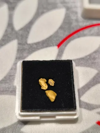 Set di cinque pepite d'oro naturale. Dall'Estremadura. 1,24 g di oro in totale. 24k. Pezzi unici di oro. Ideale per collezionisti o investitori.