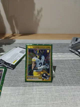 Carta di Kaleb Johnson della collezione Score, edizione Rookie (RC). - Numero di carta: 313 di 415. - Design parallelo Laser.