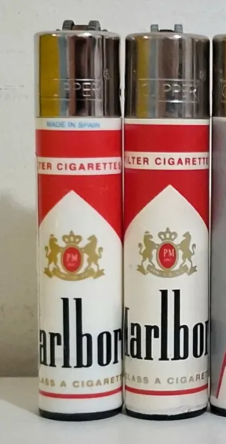 4 accendini Clipper con design a tema tabacco. 2 accendini Marlboro 2 accendini 234