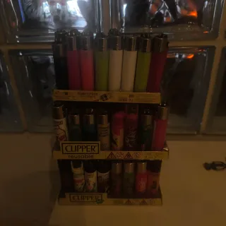 Lotto composto da 48 accendini marca Clipper più l espositore . - Accendini di varie fantasie e colori. - Accendini ricaricabili. - Alcuni Accendini hanno la pietra focaia e alcuni non hanno la pietra focaia