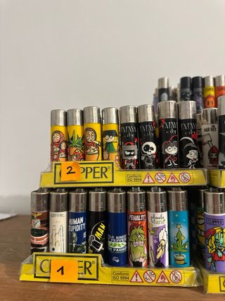 Lote di 500 accendini del marchio Clipper. Include PepitaPapaya, Karikato, BadDay, Zombis... Molte collezioni complete. Tutti funzionano, alcuni necessitano di gas e pietre. Completi (molla, cappuccio, pietre, ruota, ecc) tutto originale di Clipper. Ideale per collezionisti.