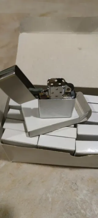 Lotteria di 24 accendini a benzina, stile Zippo, e due Dakota a benzina in regalo pronti per essere usati. Vengono presentati nella loro confezione originale. Design classico e funzionale. Ideali per collezionisti o uso personale, ecc. Prezzo per tutti.