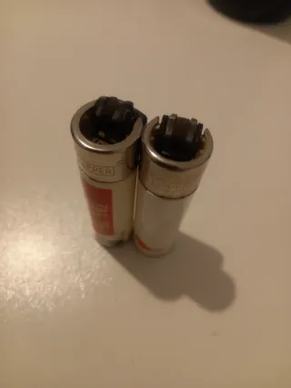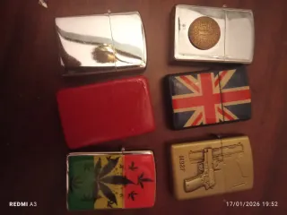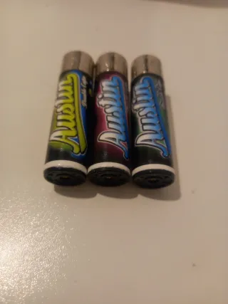 Set di 12 accendini di diversi stili e colori. - Accendini in metallo e plastica. - Design vari, alcuni con incisioni. - Include accendini di diverse dimensioni. Gli accendini singoli costano 5€ ciascuno, il set 50€.