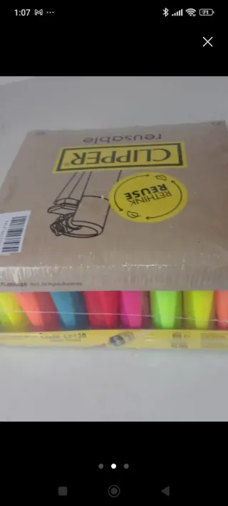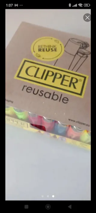 Pacchetto di accendini Clipper riutilizzabili. - Design Rethink Reuse. - Colori vari: verde, rosa, blu e arancione. - Imballaggio in cartone.