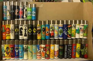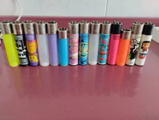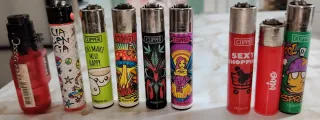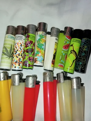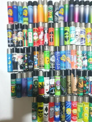 Lote de 100 encendedores Clipper de diferentes diseños y colores. - Algunos todavía cargados. - Variedad de estampados. - Diseños coloridos y llamativos. - Perfectos para coleccionar o usar.
