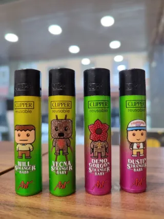 Set di 4 accendini Clipper con design di Stranger Things. Collezione limitata Nuovi #strangerthings