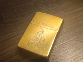 Accendino Zippo originale SOLID BRASS con incisione Eagle (U.S.A.) e un veliero. Appartenente ad un ufficiale....parte sul retro incisa a mano in maniera molto particolare.....questo sono accendini che hanno una storia da raccontare. - Materiale: Ottone massiccio. - Design: Incisione di un veliero e testo Eagle (U.S.A.). - Scritta SOLID BRASS incisa sulla parte superiore.