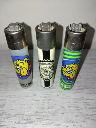 Set di tre accendini Clipper con design Bulldog Amsterdam. - Design con bulldog giallo e strisce. - Design con bulldog bianco e nero. - Design con bulldog giallo e strisce blu e verdi. Usati quindi vuoti, ideali per collezioni SET PERSONALIZZABILE! Se preferisci, scegli accendini da un altro mio annuncio e a seconda della disponibilità crea il tuo set su misura:contattami per concordare prezzo e spedizione