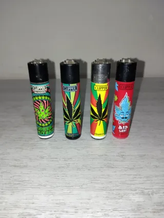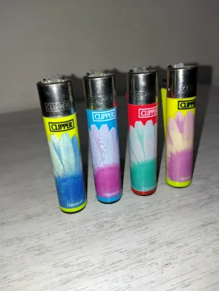 Set di 4 accendini Clipper con fantasie a tema erba. - Design colorati e originali. - Modelli assortiti come da foto. Usati quindi vuoti, ideali per collezioni SET PERSONALIZZABILE! Se preferisci, scegli accendini da un altro mio annuncio e a seconda della disponibilità crea il tuo set su misura:contattami per concordare prezzo e spedizione