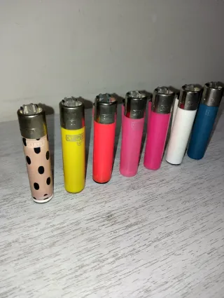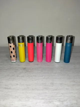 Vendo set di 7 accendini Clipper in diverse colorazioni vivaci. - Accendino a pois neri - Accendino giallo - Accendino arancione - Accendino rosa - Accendino fucsia - Accendino bianco - Accendino blu Usati quindi vuoti, ideali per collezioni SET PERSONALIZZABILE! Se preferisci, scegli accendini da un altro mio annuncio e a seconda della disponibilità crea il tuo set su misura:contattami per concordare prezzo e spedizione