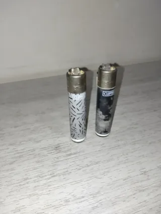 Set di due accendini marca Clipper. - Uno con fantasia a righe nere su sfondo grigio. - Uno con fantasia nuvole. Usati quindi vuoti, ideali per collezioni SET PERSONALIZZABILE! Se preferisci, scegli accendini da un altro mio annuncio e a seconda della disponibilità crea il tuo set su misura:contattami per concordare prezzo e spedizione