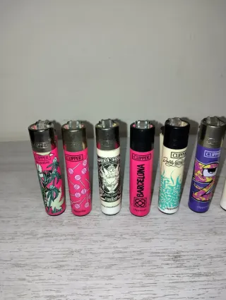 Set di 5 accendini Clipper con grafiche assortite. - Design unici e colorati. - Modelli da collezione. Usati quindi vuoti, ideali per collezioni Leggermente ingialliti SET PERSONALIZZABILE! Se preferisci, scegli accendini da un altro mio annuncio e a seconda della disponibilità crea il tuo set su misura:contattami per concordare prezzo e spedizione