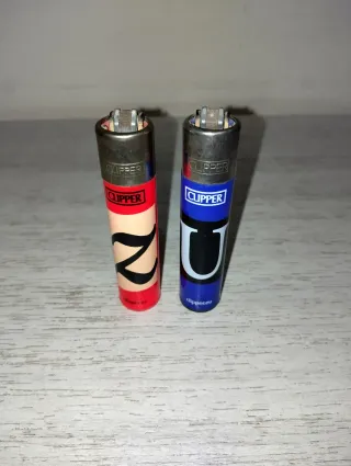 Due accendini Clipper con design colorato. - Accendino rosso con disegno nero lettera Z. - Accendino blu con disegno nero lettera U. Usati quindi vuoti, ideali per collezioni SET PERSONALIZZABILE! Se preferisci, scegli accendini da un altro mio annuncio e a seconda della disponibilità crea il tuo set su misura:contattami per concordare prezzo e spedizione