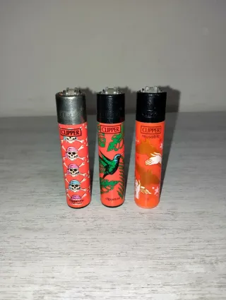 Tre accendini Clipper riutilizzabili con fantasie diverse. - Accendino con teschi e bandiera pirata. - Accendino con colibrì e foglie tropicali. - Accendino con mani e decorazioni floreali. Usati quindi vuoti, ideali per collezioni SET PERSONALIZZABILE! Se preferisci, scegli accendini da un altro mio annuncio e a seconda della disponibilità crea il tuo set su misura:contattami per concordare prezzo e spedizione