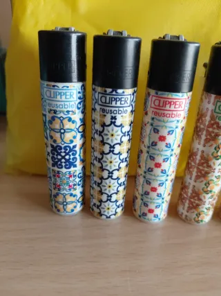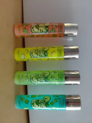 Set di 4 accendini Clipper My Clipper, riutilizzabili e con design unici. - Modelli assortiti con grafiche originali. - Marchio Clipper garantito.