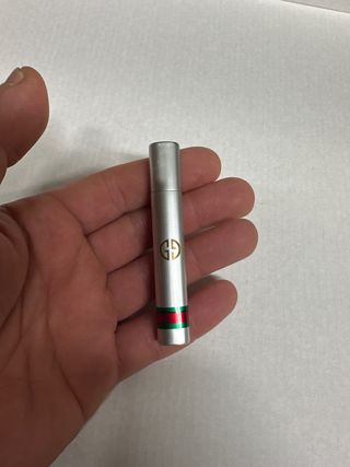 Set di accendini Gucci, ideali per collezionisti o per chi desidera restaurarli. - Design iconico Gucci. - Colore argento con dettagli a nastro rosso e verde. - Logo GG dorato sul corpo.