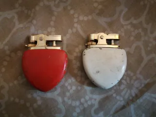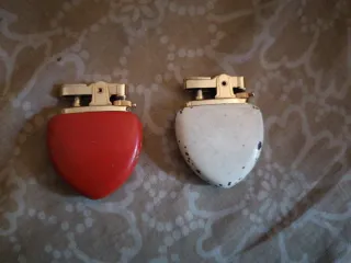 Due accendini vintage a forma di cuore, uno rosso e uno bianco. Perfetti per collezionisti. - Design a forma di cuore - Colore rosso - Colore bianco. Alcuni di questi con decorazioni vengono venduti a 50 l'uno