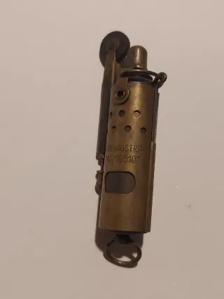 Un modello iconico prodotto in Austria dalla IMCO (Julius Meister & Co.). Ecco i dettagli identificativi principali basati sulle iscrizioni visibili: Si tratta del modello IMCO IFA (o YFA), caratterizzato dalla tipica forma cilindrica in ottone. Il numero di brevetto 105107 inciso sul corpo conferma l'autenticità del design austriaco dell'epoca. Periodo Storico: Questi accendini furono progettati per essere estremamente robusti e affidabili, venendo ampiamente utilizzati dai soldati durante la Prima Guerra Mondiale e negli anni '20.