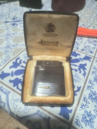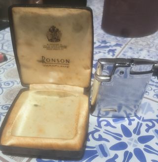 Set composto da due accendini, uno Ronson Varaflame e un accendino da tavolo. - Accendino Ronson Varaflame in metallo. - Accendino da tavolo con base.