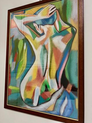 Opera d'arte realizzata con la tecnica del pastello su tela, raffigurante una figura femminile. - Tecnica: pastello su tela. - Soggetto: figura femminile.