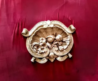 Antico autentico pezzo di carretto siciliano in ferro battuto. - Materiale: ferro battuto. - Design decorativo con figure. - Provenienza: Sicilia. - Pezzo unico da collezione - Originale Con testa e ornati - Integro in tutte le sue parti - Cm.22x20x10 - Trattasi di una pedaliera di carretto facente parte della cassafuso di un antico carretto siciliano. - Interamente battuto e forgiato a mano dagli antichi carrettieri siciliani. -Si può appendere o utilizzare come ferma libro, ferma carte, o semplicemente ammirarne la bellezza poggiato.