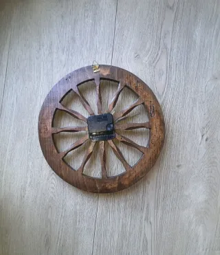 Ruota Orologio da parete in legno dal design rustico. - Realizzato in legno scolpito. - Decorazione floreale sul bordo esterno. - Piccola ruota di carretto siciliano con bassorilievi. - Diametro: 28 cm., spessore cm.2 - Materiale: Legno. - Design rustico e decorativo. - Funzionante con meccanismo incluso. - Interamente scolpita a mano da un unico pezzo di legno. - Pezzo unico