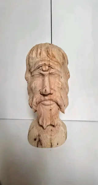 Testa Polifemo In Legno. Scultura tridimensionale Interamente scolpita a mano Alta cm.35 Larga cm.20 Da appoggio Opera realizzata da un'unico pezzo di legno da scultore siciliano Pezzo unico