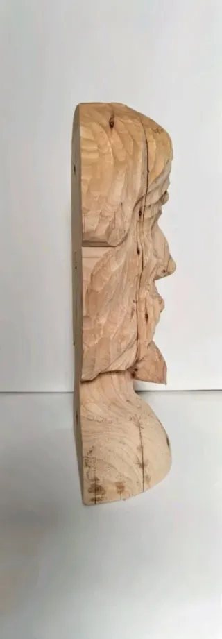 Testa donna. Scultura artistica in legno raffigurante una testa di regina con corona. - Realizzata in legno. - Design unico con corona intagliata. - Pezzo unico. - Scultura bidimensionale, interamente scolpita a mano da un'unico pezzo di legno da scultore siciliano. - Misure: Alta cm.37, larga cm.18. - Da appoggio o da appendere