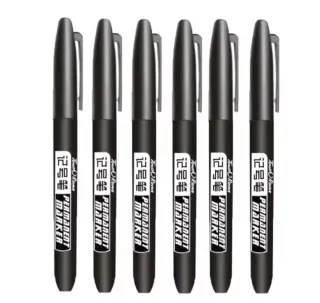 Set di sei pennarelli indelebili neri. - Colore: nero - Tipo: indelebile - Quantità: 6 pezzi - punta da 1,5 mm - non sbiadisce asciugatura rapida senza acidi - inchiostro Premium - impermeabili - ideali per scrivere su tutte le superfici