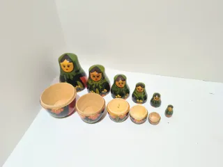 Set di sei matrioske russe originali in legno, un classico oggetto decorativo. Vintage. Dipinte a mano. - Realizzate in legno. - Design tradizionale russo. - Pezzi impilabili.