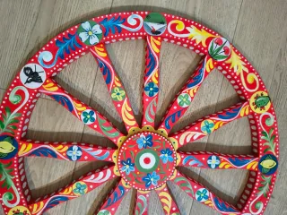 Ruota Carretto Siciliano Legno Dipinta Mano