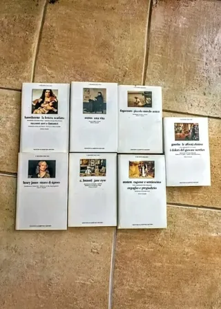 7 libri I classici dell'Ottocento, perfetti per gli amanti della letteratura. Prima edizione del 2004 con doppia copertina mai sfogliati. - Hawthorne: La lettera scarlatta - Svevo: Una vita - Fogazzaro: Piccolo mondo antico - C. Brontë: Jane Eyre - Henry James: Ritratto di signora - Austen: Ragione e sentimento (Orgoglio e pregiudizio) - Goethe: Le affinità elettive (I dolori del giovane Werther)