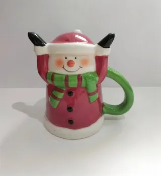 Tazza a forma di simpatico pupazzo di neve, perfetta per le feste. - Design natalizio con cappello e sciarpa. - Manico verde. - Dettagli dipinti a mano. - Alta cm 13 - marca babbo matto solidale - nuova