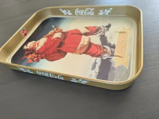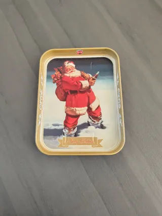 Vassoio da collezione Coca-Cola con un'illustrazione di Babbo Natale. - Design vintage. - Immagine di Babbo Natale con sacco e bottiglia. - Scritta Merry Christmas sul vassoio. Centimetri 28x21x3