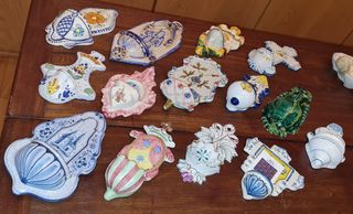 Collezione di 14 antiche acquasantiere in porcellana e ceramica di diverse forme. Prezzo negoziabile