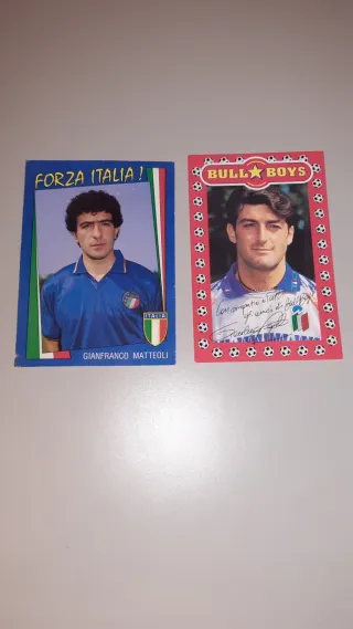 Due cartoline da collezione dedicate al calcio italiano. - Cartolina Forza Italia! con Gianfranco Matteoli. - Cartolina Bull Boys con Gianluca Pagliuca e dedica. - Entrambe le cartoline presentano immagini del calciatore.