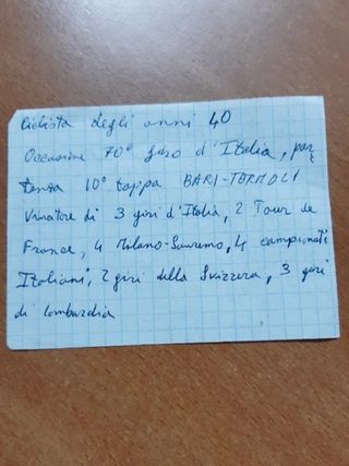 Autografo Gino Bartali in occasione della partenza della tappa 10 del Giro d'Italia 1987