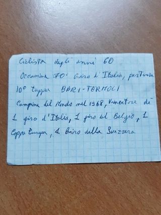 Autografo Vittorio Adorni in occasione della partenza della tappa 10 del Giro d'Italia 1987