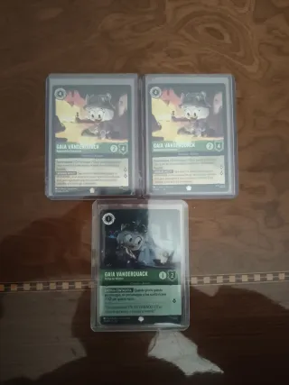 Set di carte di Lorcana. - 2x Gaia Vanderquack (93/204) - 1x Gaia Vanderquack (211/204) Carte leggendarie e epiche appena sbustate e protette